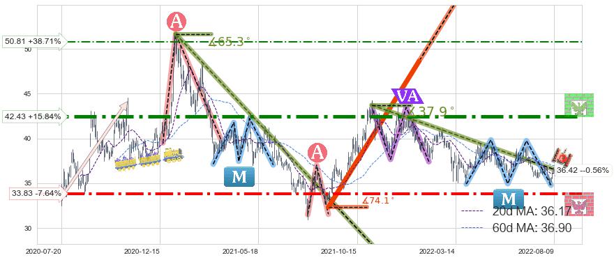 ♞ 20日均线:36.17,60日均线:36.90→ 快线<慢线