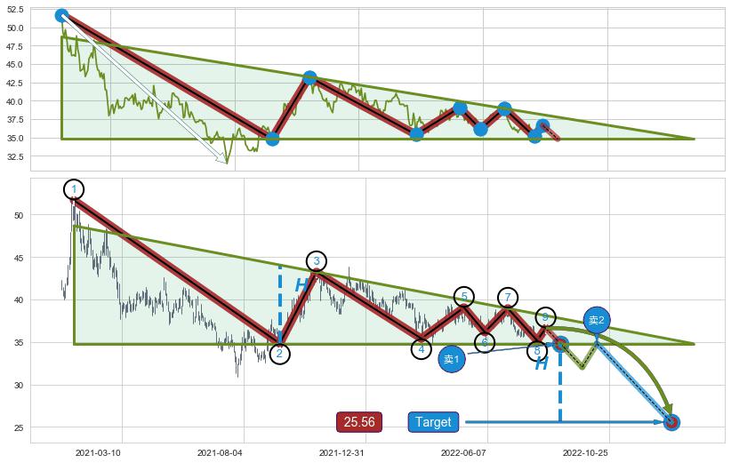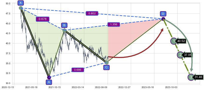 ➣ D点拟合预测价格46.12,距离最后交易收盘价格36.63相差 +25.90%