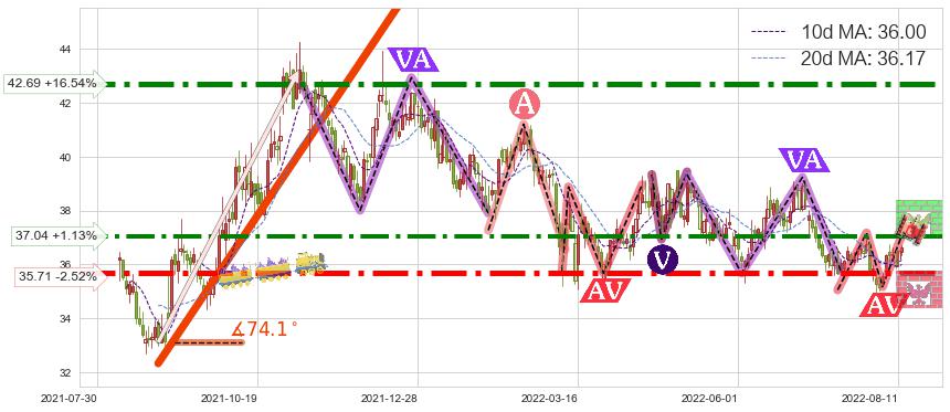 ♘ 阻力价格位37.04,可信任强度84.40%,距离最后交易2022-08-12形成的收盘价格36.63相差 +1.13%