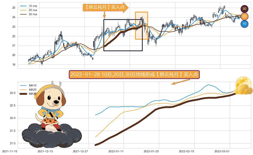 ⚀ 2021-12-29日-2022-03-04日显现 10日-20日-30日均线 【烘云托月】买入点 看多信号,后市看涨,买入