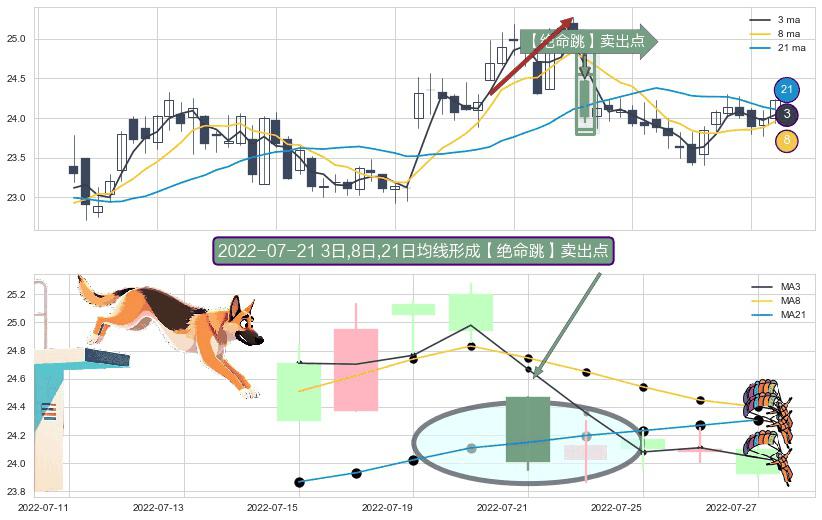 ⚀ 2022-07-21日显现 3日-8日-21日均线 【绝命跳】卖出点 看空信号,后市看跌,卖出