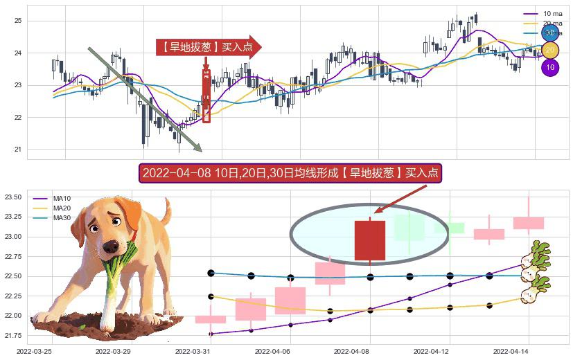 ⚀ 2022-04-08日显现 10日-20日-30日均线 【旱地拔葱】买入点 看多信号,后市看涨,买入