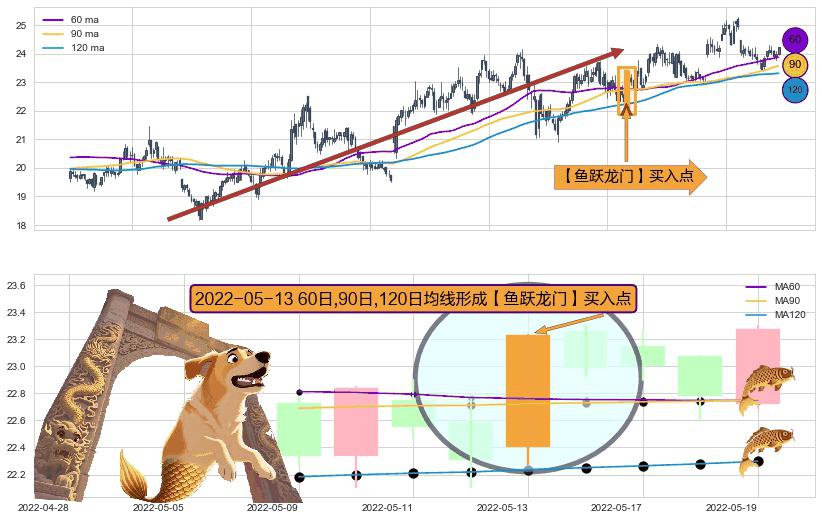 ⚀ 2022-05-13日显现 60日-90日-120日均线 【鱼跃龙门】买入点 看多信号,后市看涨,买入