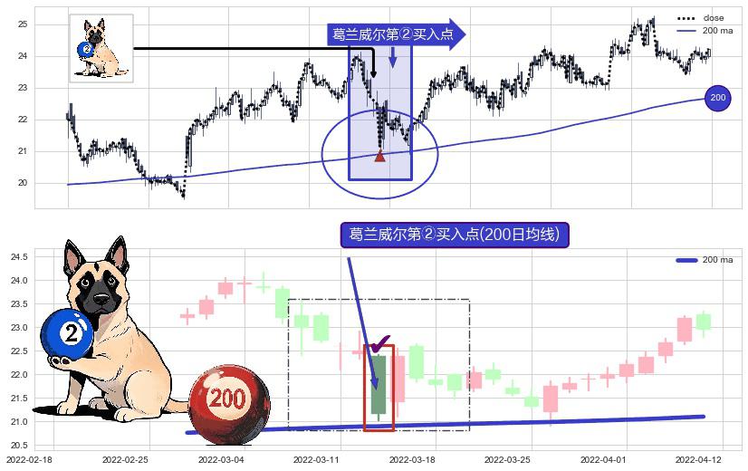 ⚀ 2022-03-15-日显现 葛兰威尔均线 200日均线 第②买入点 上升趋势的中继信号,后市看涨,买进信号