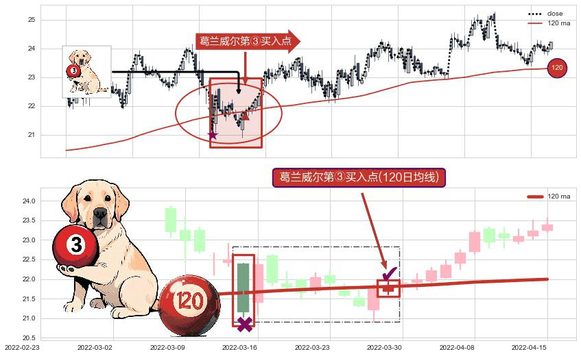 ⚀ 2022-03-29-日显现 葛兰威尔均线 120日均线 第③买入点 上升趋势的中继信号,后市看涨,买进信号