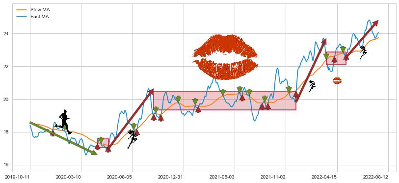 2021-12-14至2022-03-15 慢线与快线呈多头排列, 慢线与快线接触少,无缠绕
