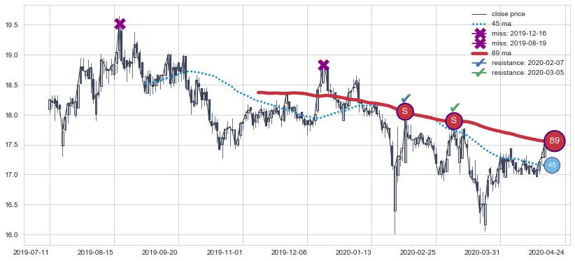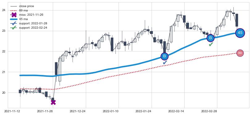 ⚂ 2022-03-15-日均线向下破位,2022-03-29-日重新上穿突破均线,均线支撑再次生效