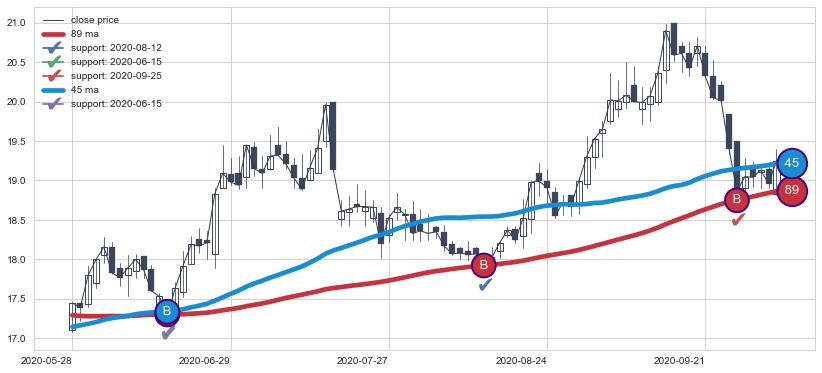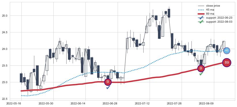⚂ 第②买入点 长时间对均线 支撑 效果确认,但信号发出时间较长,属于【迟滞】看多买入信号