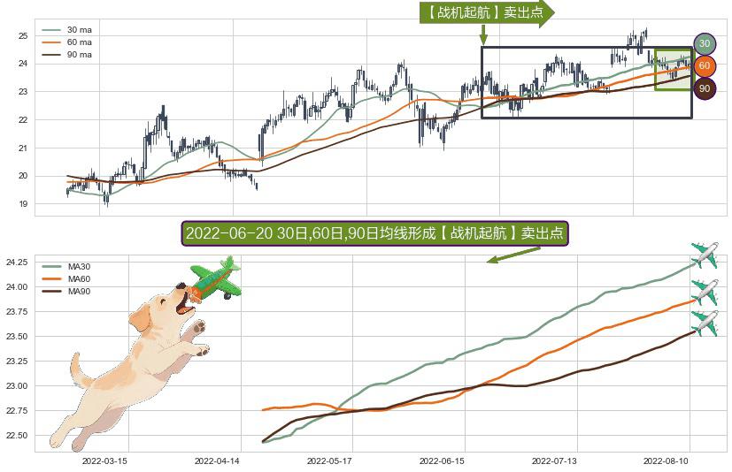 ⚀ 2022-04-20日-2022-08-11日显现 30日-60日-90日均线 【战机起航】卖出点 看空信号,后市看跌,卖出