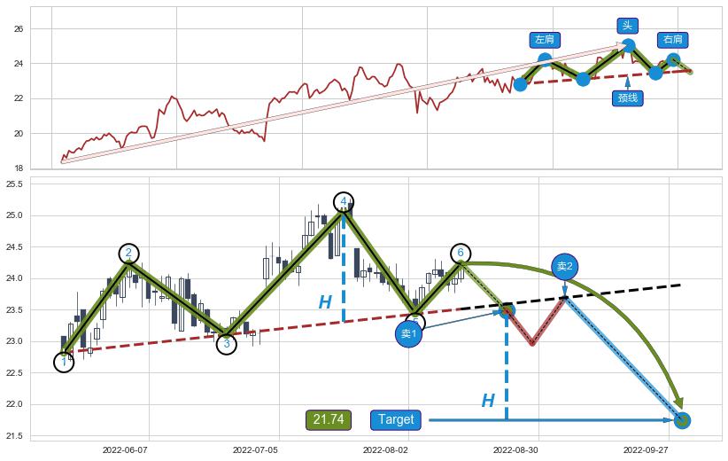 ➣ 【未确认突破,预测即将形成突破】头肩顶起点:2022-05-12, 预测突破点:2022-08-23,形态共73交易日