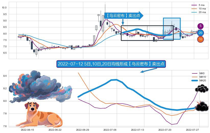 ⚀ 2022-06-27日-2022-07-27日显现 5日-10日-20日均线 【乌云密布】卖出点 看空信号,后市看跌,卖出
