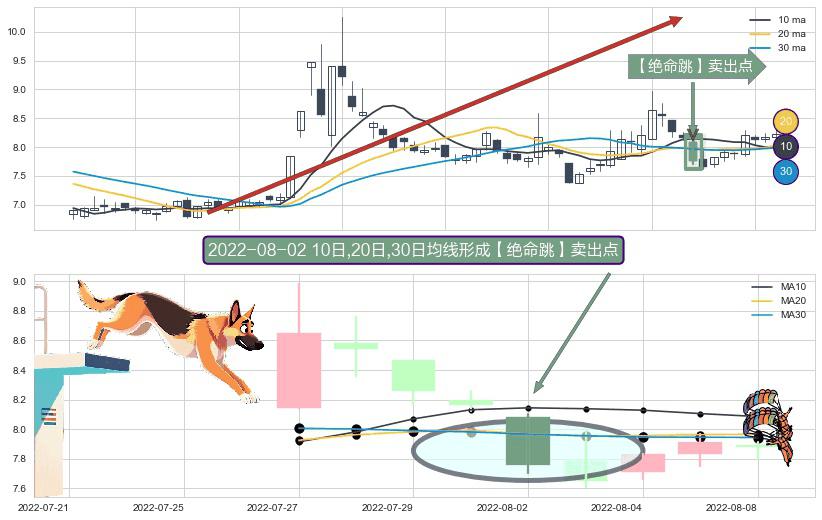 ⚀ 2022-08-02日显现 10日-20日-30日均线 【绝命跳】卖出点 看空信号,后市看跌,卖出