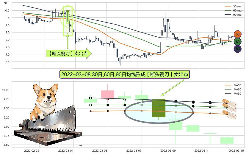 ⚀ 2022-03-08日显现 30日-60日-90日均线 【断头铡刀】卖出点 看空信号,后市看跌,卖出