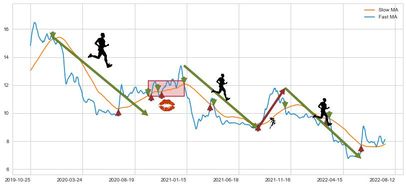 2021-11-01至2022-06-09 慢线与快线呈空头排列, 慢线与快线接触少,无缠绕