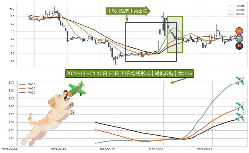⚀ 2022-05-11日-2022-06-22日显现 10日-20日-30日均线 【战机起航】卖出点 看空信号,后市看跌,卖出