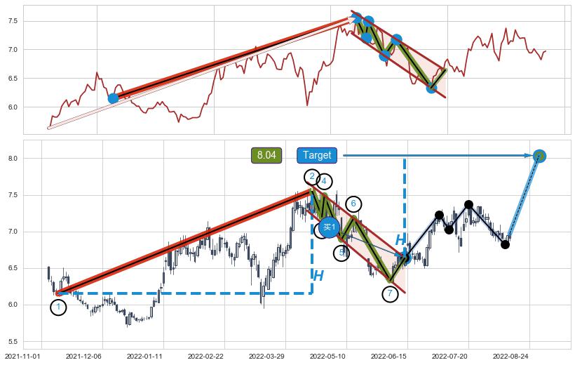 ➢ 2022-08-03到达第❶价格目标位置6.94