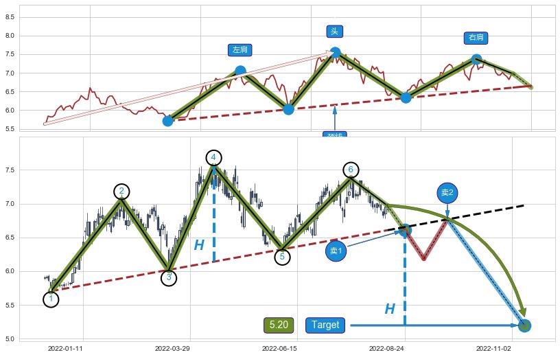 ➣ 最小反转跌幅→𝐇: 1.4094 (头部与颈线垂直距离)