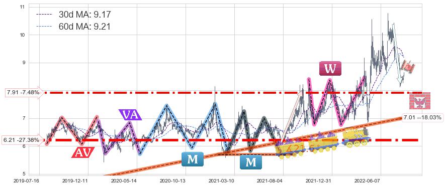 ♘ 支撑价格位7.91,可信任强度84.88%,距离最后交易2022-08-12形成的收盘价格8.55相差 -7.48%