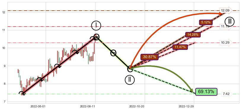 ➣ c.1: 当前c浪回调位置(2022-08-12, 10.62),仍然有回调空间
