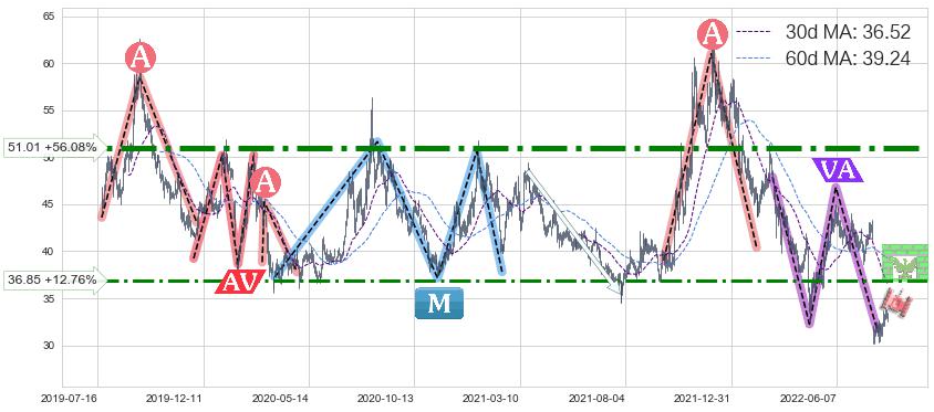 ♘ 阻力价格位36.85,可信任强度69.04%,距离最后交易2022-08-12形成的收盘价格32.68相差 +12.76%