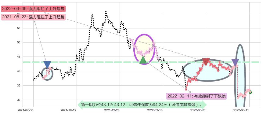 ♘ 阻力价格位43.12,可信任强度94.24%,距离最后交易2022-08-12形成的收盘价格32.68相差 +31.95%