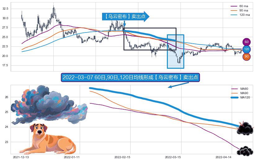 形态多维评估: ⚀ 2022-01-17日-2022-04-20日显现 60日-90日-120日均线 【乌云密布】卖出点 看空信号,后市看跌,卖出