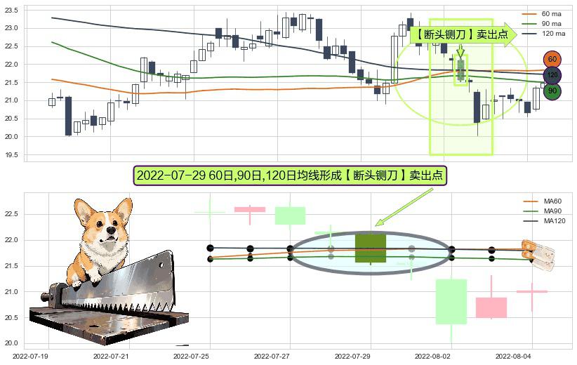 形态多维评估: ⚀ 2022-07-29日显现 60日-90日-120日均线 【断头铡刀】卖出点 看空信号,后市看跌,卖出