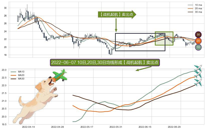 形态多维评估: ⚀ 2022-05-06日-2022-07-06日显现 10日-20日-30日均线 【战机起航】卖出点 看空信号,后市看跌,卖出