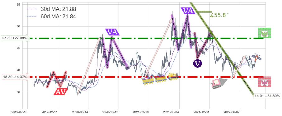 ♘ 支撑价格位18.39,可信任强度93.89%,距离最后交易2022-08-12形成的收盘价格21.48相差 -14.37%