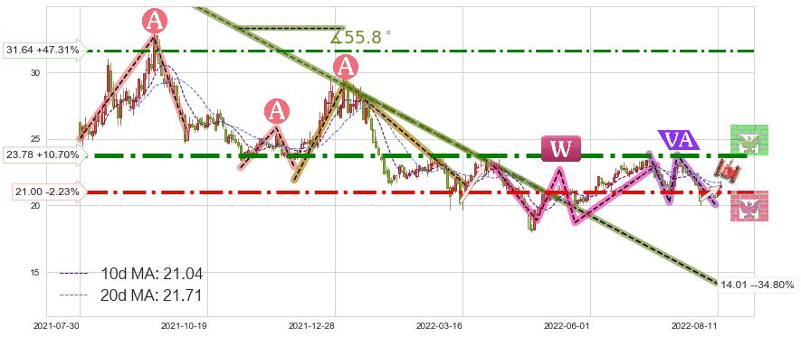 ♘ 阻力价格位31.64,可信任强度57.10%,距离最后交易2022-08-12形成的收盘价格21.48相差 +47.31%