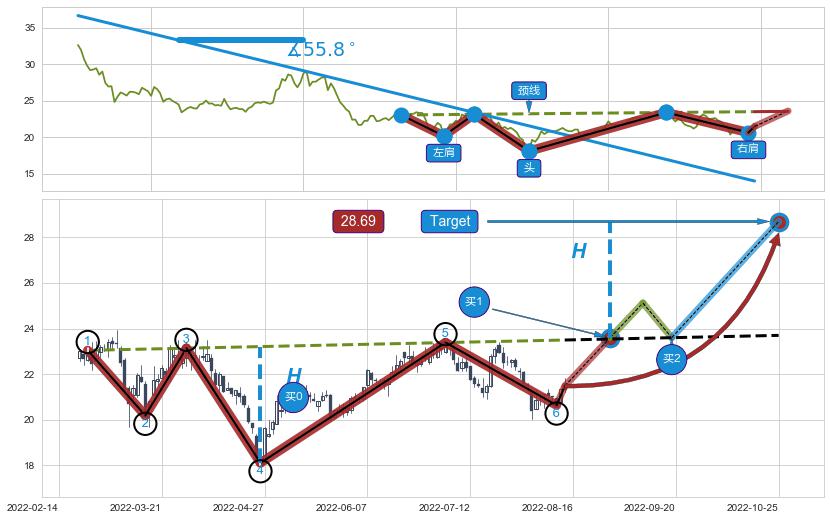 ➢ AI预测: 假定反转启动后, 第❷目标位置(2023-02-27, 21.75)