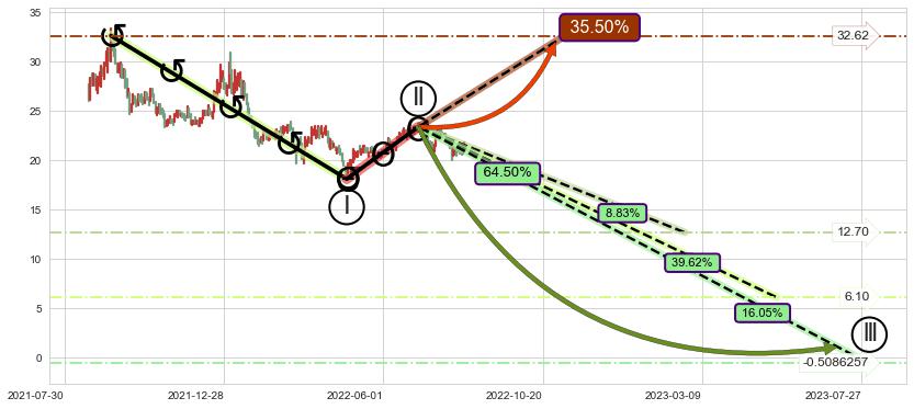 ➣ D点拟合预测价格27.65,距离最后交易收盘价格21.48相差 +28.72%