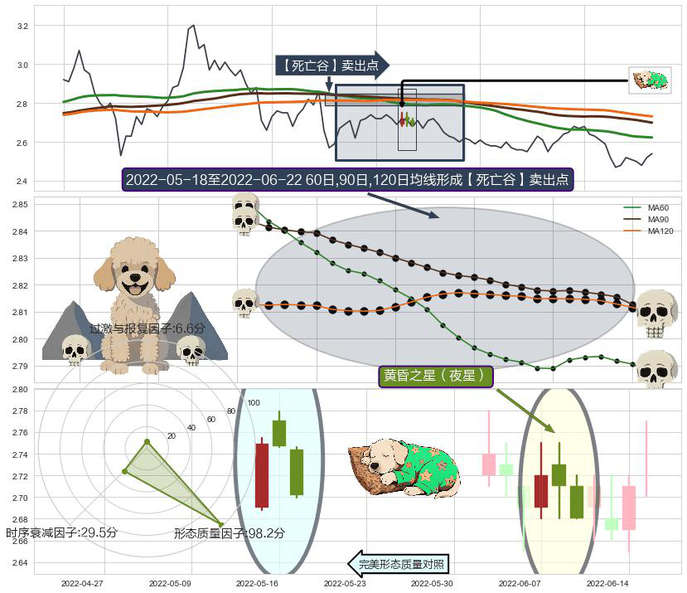 ➢ 黄昏之星(夜星) 🔜 【死亡谷】卖出点死亡谷均线交叉卖出点 综合量化分数:39.69 【偏空】