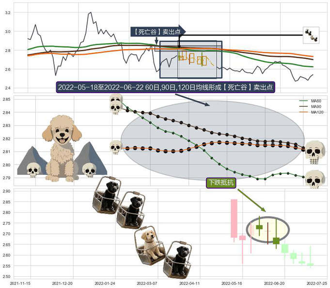 ➢ 下跌抵抗 🔜 【死亡谷】卖出点死亡谷均线交叉卖出点 综合量化分数:37.12 【偏空】