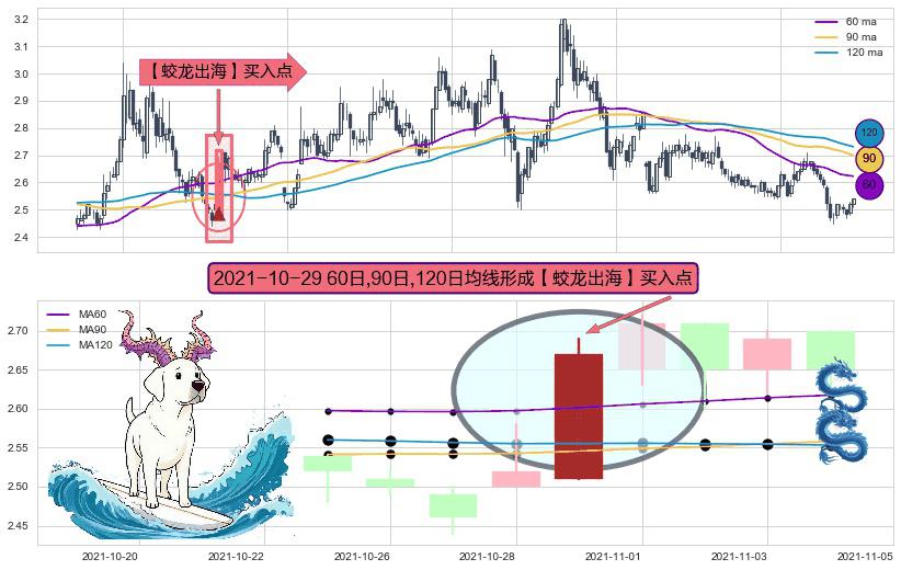 形态多维评估: ⚀ 2021-10-29日显现 60日-90日-120日均线 【蛟龙出海】买入点 看多信号,后市看涨,买入