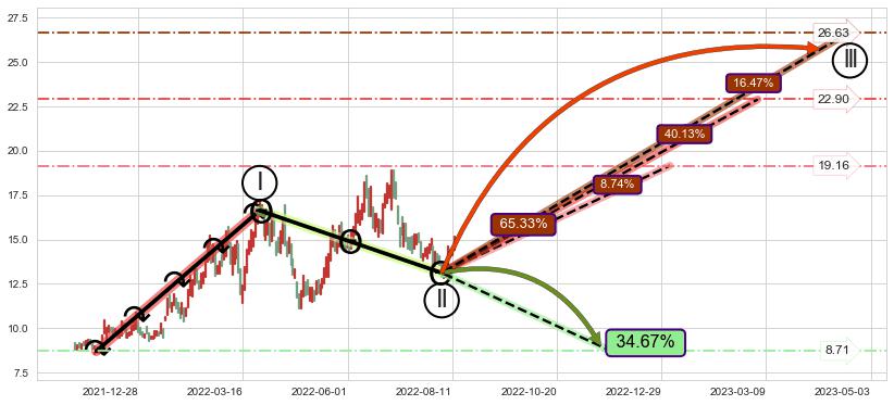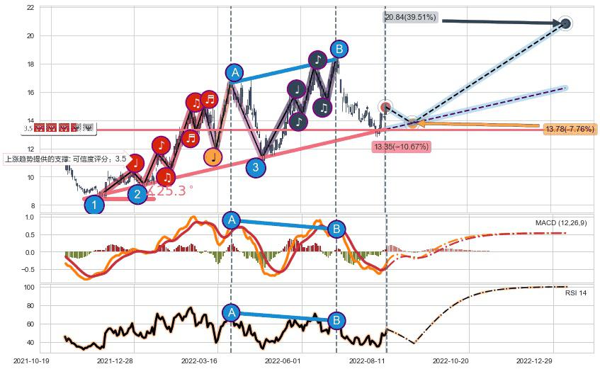 ➢ AI预测: 假定反转如期而至,第❶价格目标位置(2022-08-15, 15.10)