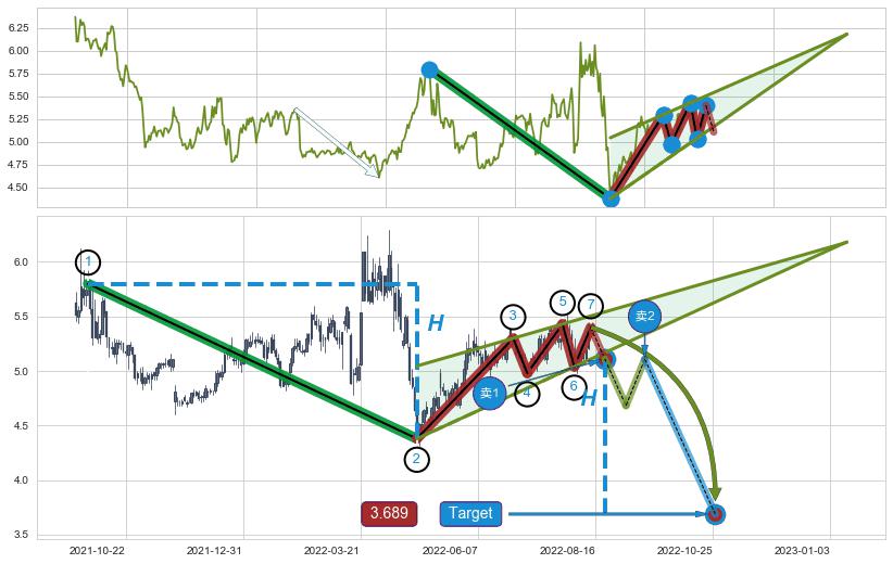 ➣ 【仅预测突破】最后价格:5.40与预测突破价格:5.11→【空间较大】后续最小【整理】第一目标价格→(2022-10-26: 3.689 )