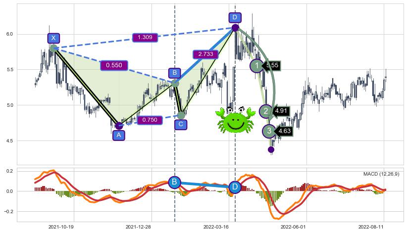 ➣ 已完成【螃蟹】形态起点X: 2021-09-23, 终点D: 2022-03-22, 共118交易日