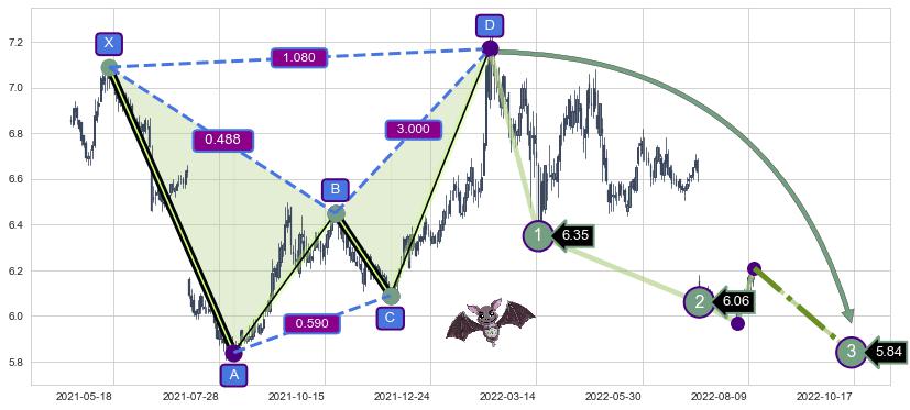 ➣ 已完成【蝙蝠】形态起点X: 2021-05-14, 终点D: 2022-02-10, 共181交易日