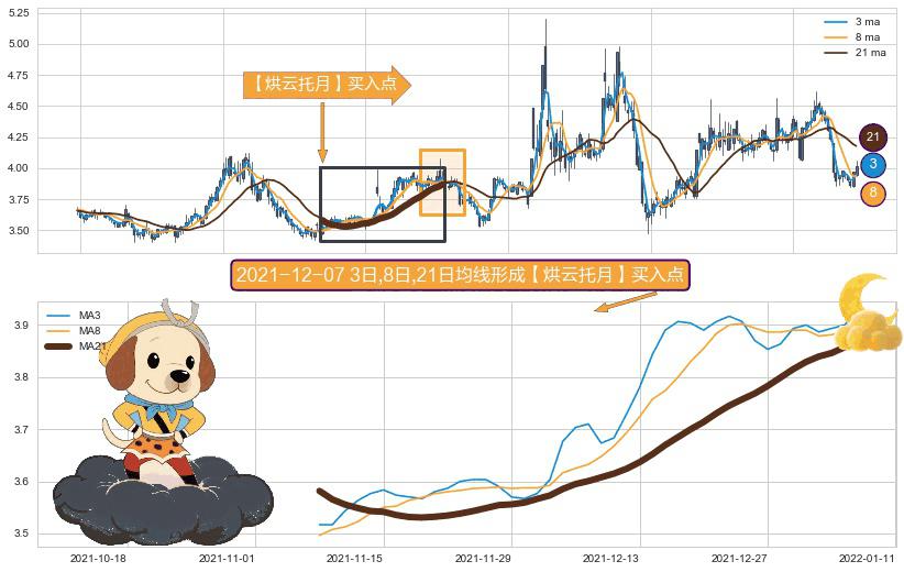 ⚀ 2021-11-08日-2022-01-06日显现 3日-8日-21日均线 【烘云托月】买入点 看多信号,后市看涨,买入
