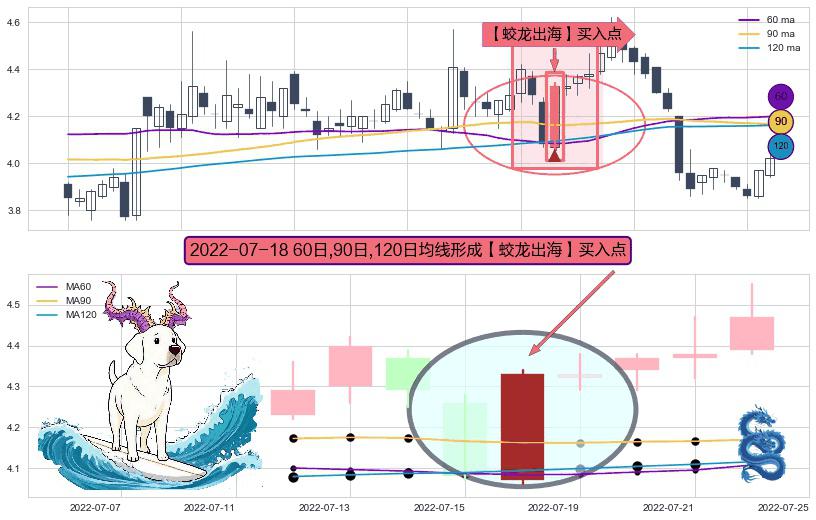 ⚀ 2022-07-18日显现 60日-90日-120日均线 【蛟龙出海】买入点 看多信号,后市看涨,买入
