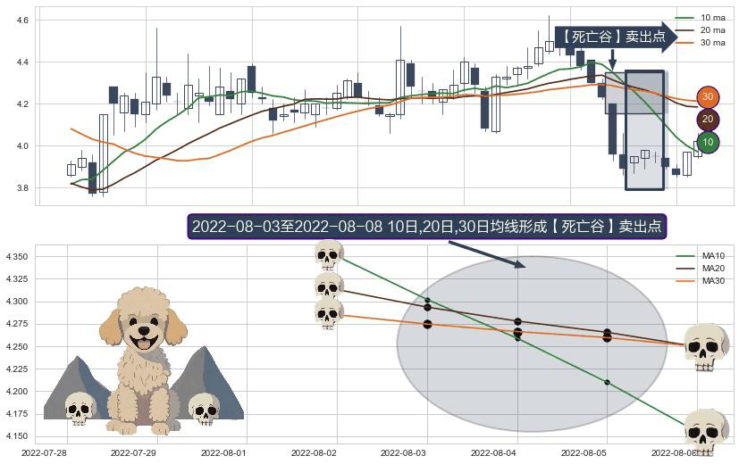 ⚀ 2022-08-04-日至2022-08-08-日显现 10日-20日-30日均线 【死亡谷】卖出点 看空信号,后市看跌,卖出