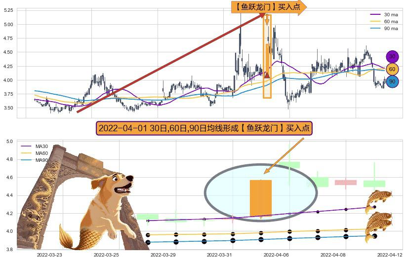 ⚀ 2022-04-01日显现 30日-60日-90日均线 【鱼跃龙门】买入点 看多信号,后市看涨,买入