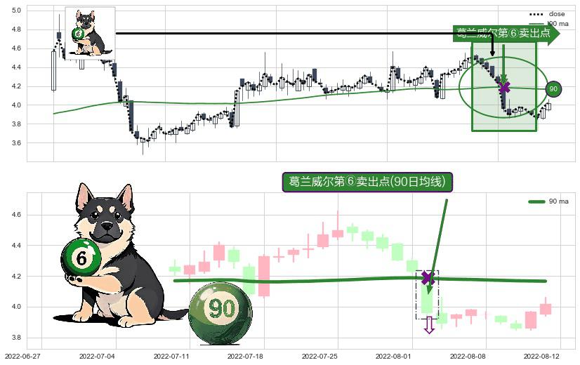 ⚀ 2022-08-02-日显现 葛兰威尔均线 90日均线 第⑥卖出点 走势反转见顶信号,后市看跌,卖出信号