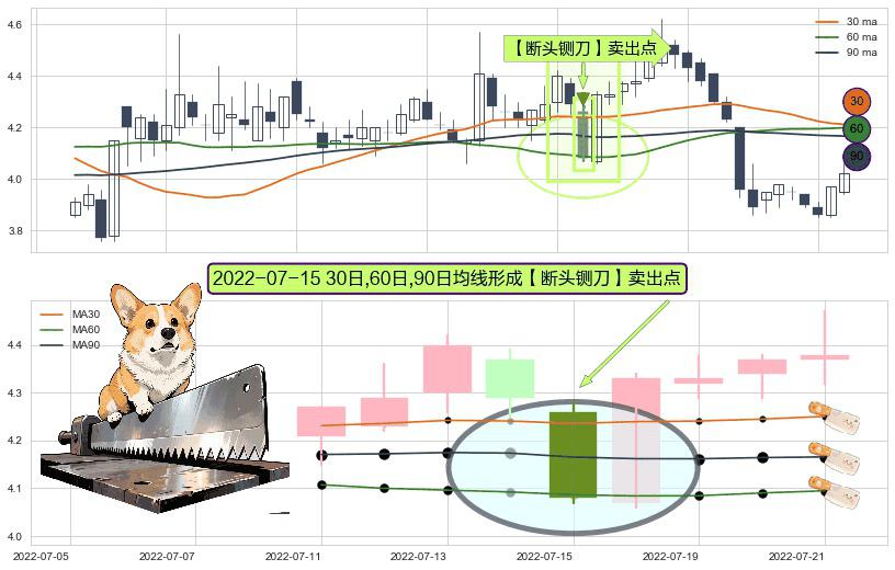 ⚀ 2022-07-15日显现 30日-60日-90日均线 【断头铡刀】卖出点 看空信号,后市看跌,卖出