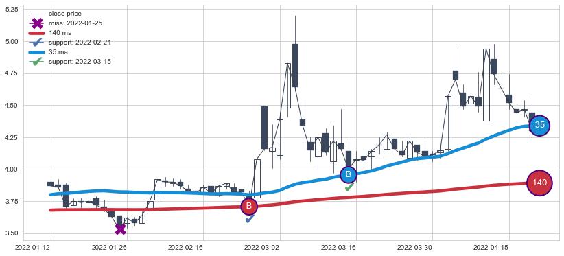 ⚃ 在破位点附近ma走势已有下垂迹象,稍后的走势中ma下降趋势明显,信号【可信度高】