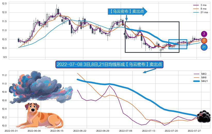 ⚀ 2022-06-20日-2022-07-27日显现 3日-8日-21日均线 【乌云密布】卖出点 看空信号,后市看跌,卖出