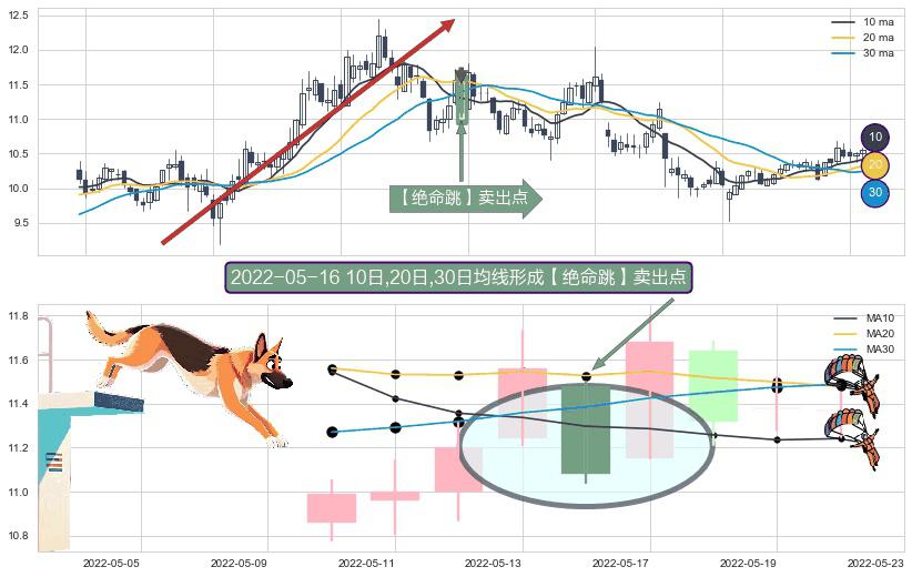 ⚀ 2022-05-16日显现 10日-20日-30日均线 【绝命跳】卖出点 看空信号,后市看跌,卖出