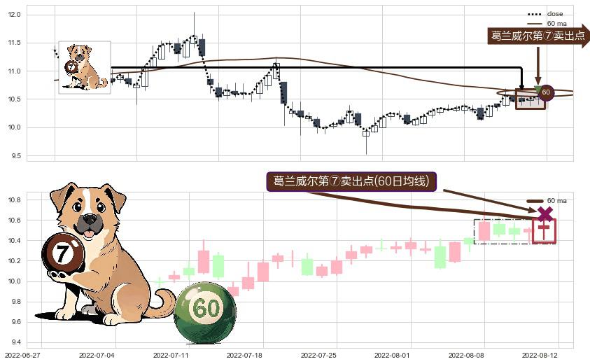⚀ 2022-08-12-日显现 葛兰威尔均线 60日均线 第⑦卖出点 下降趋势的中继信号,后市看跌,卖出信号