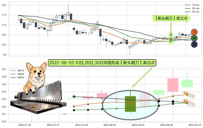 ⚀ 2022-08-03日显现 10日-20日-30日均线 【断头铡刀】卖出点 看空信号,后市看跌,卖出